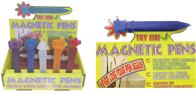 Magnetic Pens • 7 Translucent Colours - Black, Purple, Red, Orange, Blue, Green, White • 3 Stock Colours - Red, White, Blue • Other colours avaliable with custom orders • Strong magnetic backing • Great quality, low price • Custom designs avaliable Stock Pens Retail Display Box - 36 Units per box